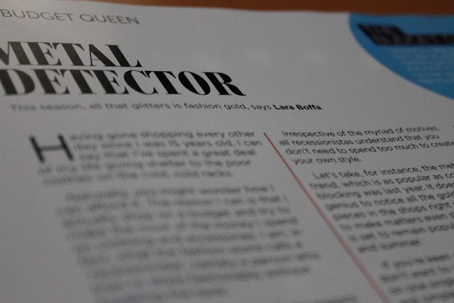 So, what I really mean to show you today is my first article for 'Femme Magazine', a local fashion magazine most Maltesers are aware of already. I've received great feedback - which I want to thank you immensely for - but I've also been asked to share the article online for those who are far away from the Maltese shores! Below is the article that was published - a bit longer actually, because I guess it was long and they had to cut some stuff out of it grrr! - the pictures from the same article, and some photos I took of the actual page on the magazine and the cover page (I somehow made it there too hah!). Let me know what you think! The article is about metallics and I tackle it from a budget-buyer's point of view..